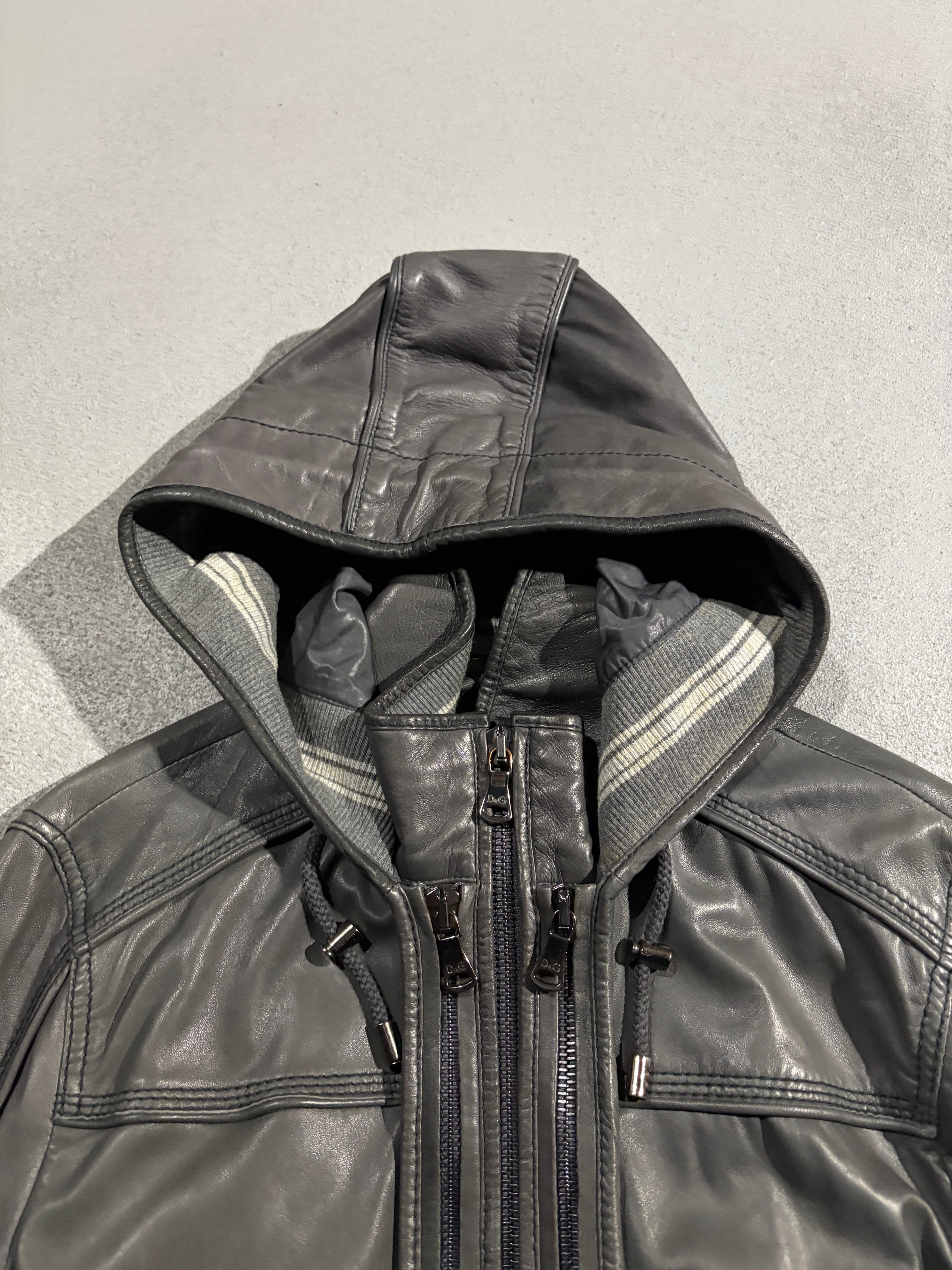 D&G Lamb Leather Hooded Zip Blouson