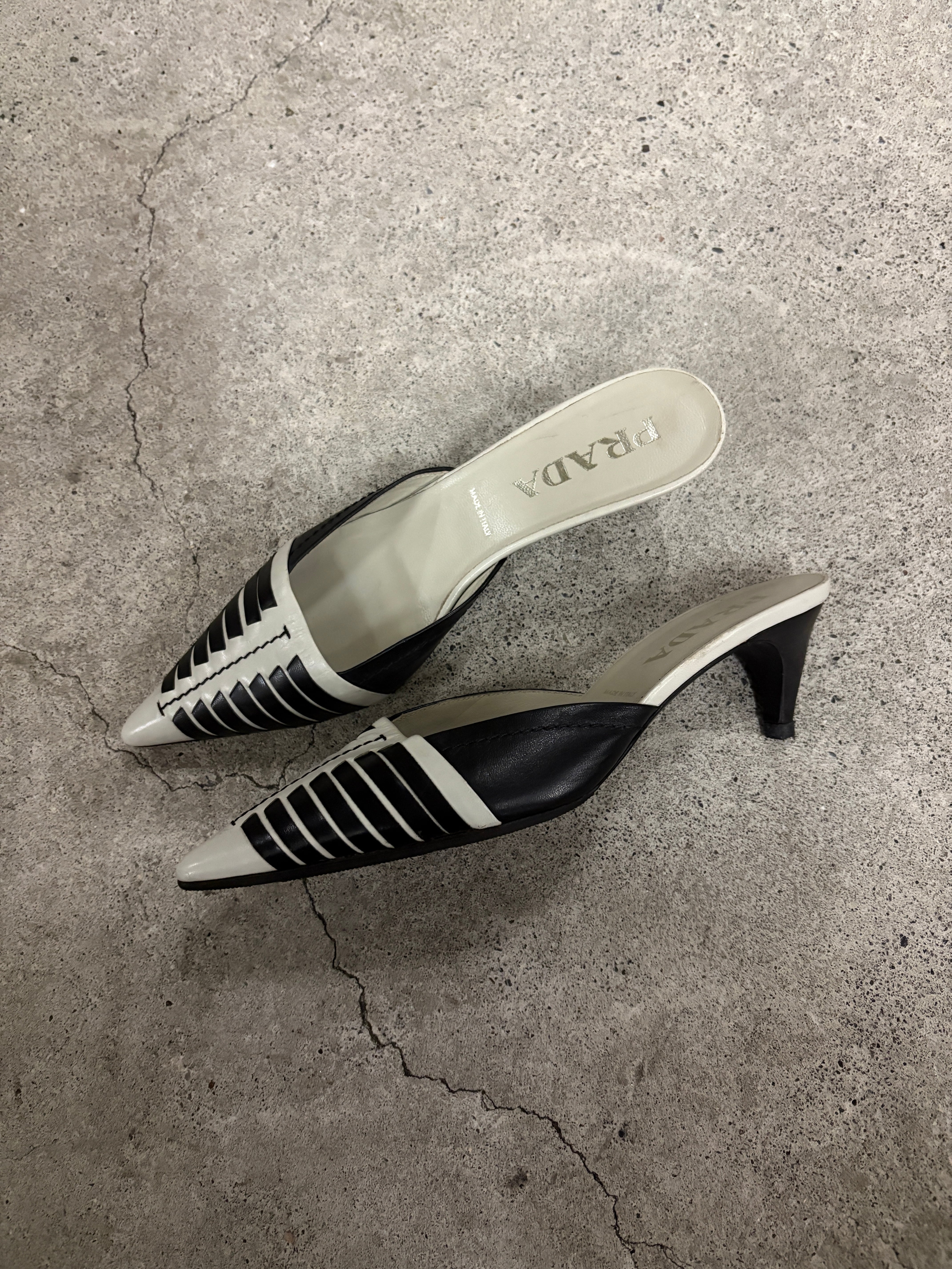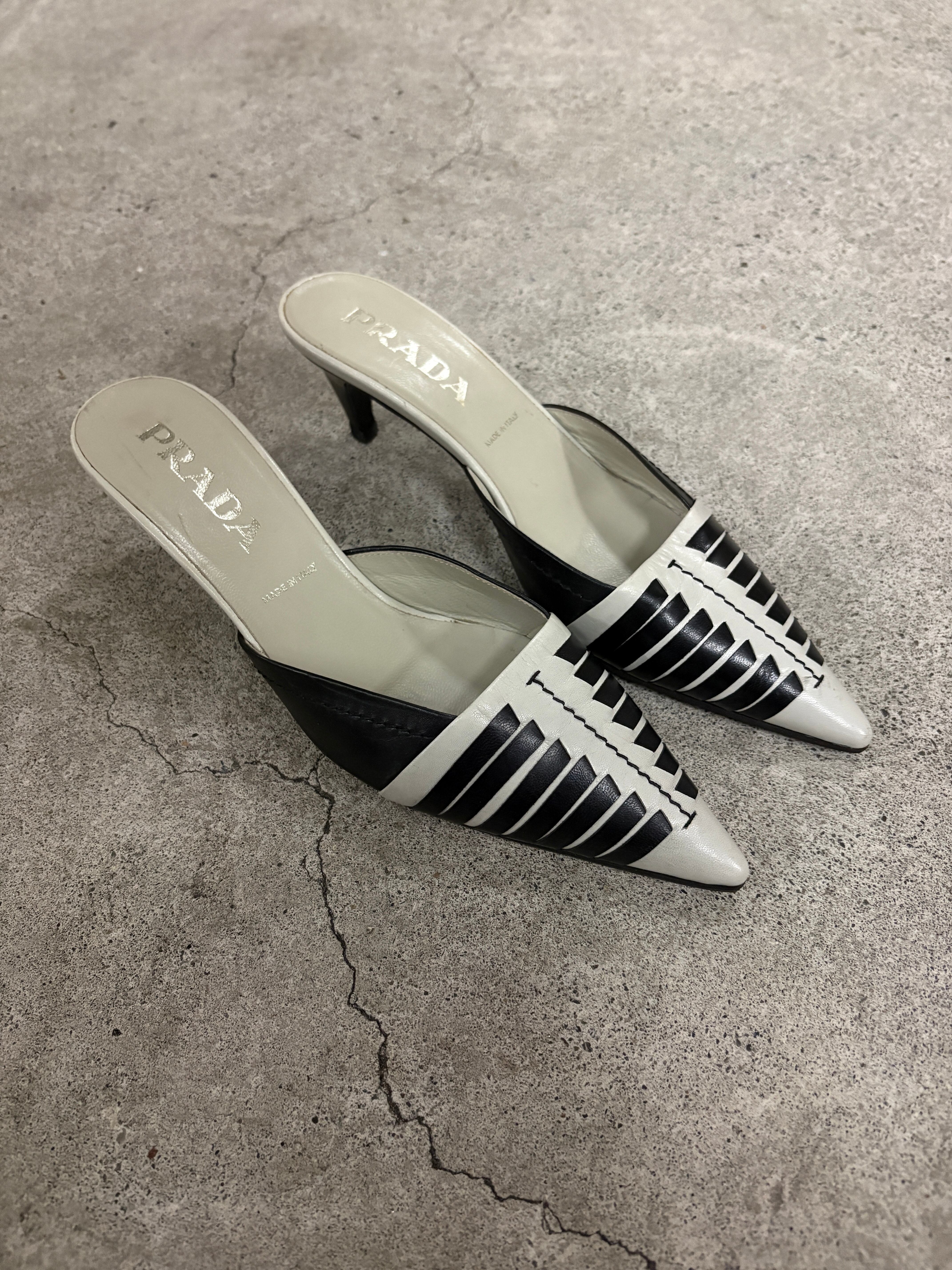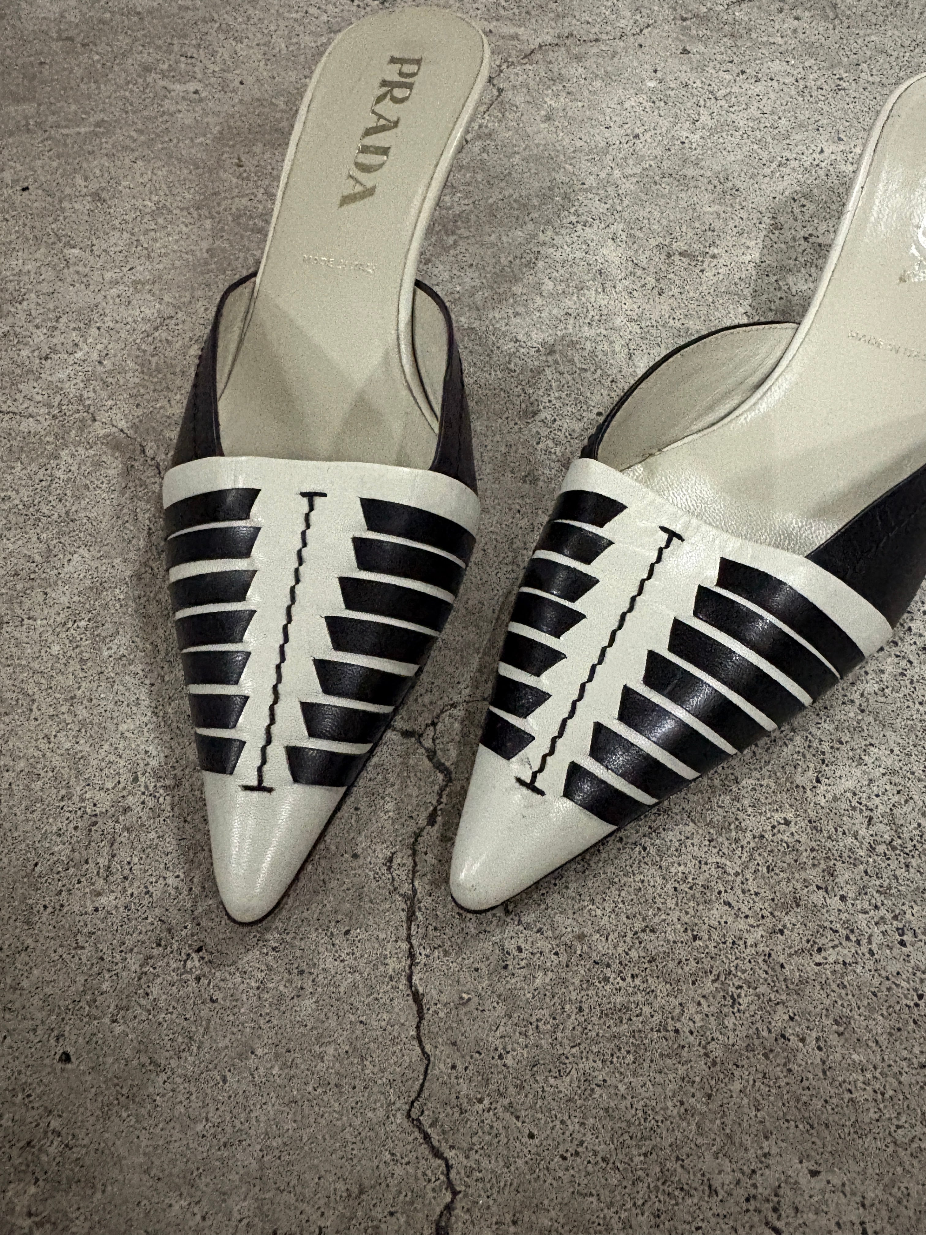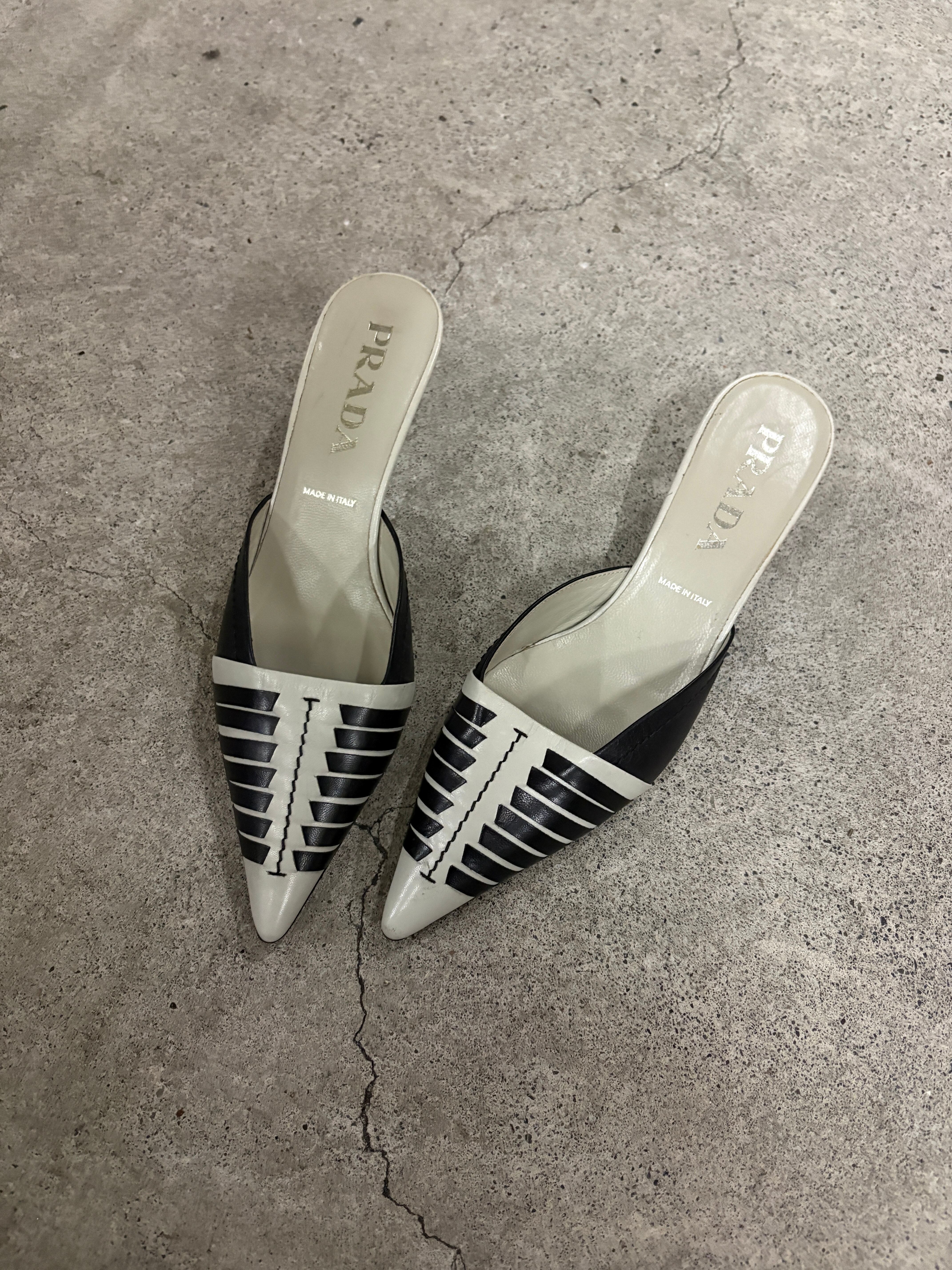 PRADA pointed toe leather mules