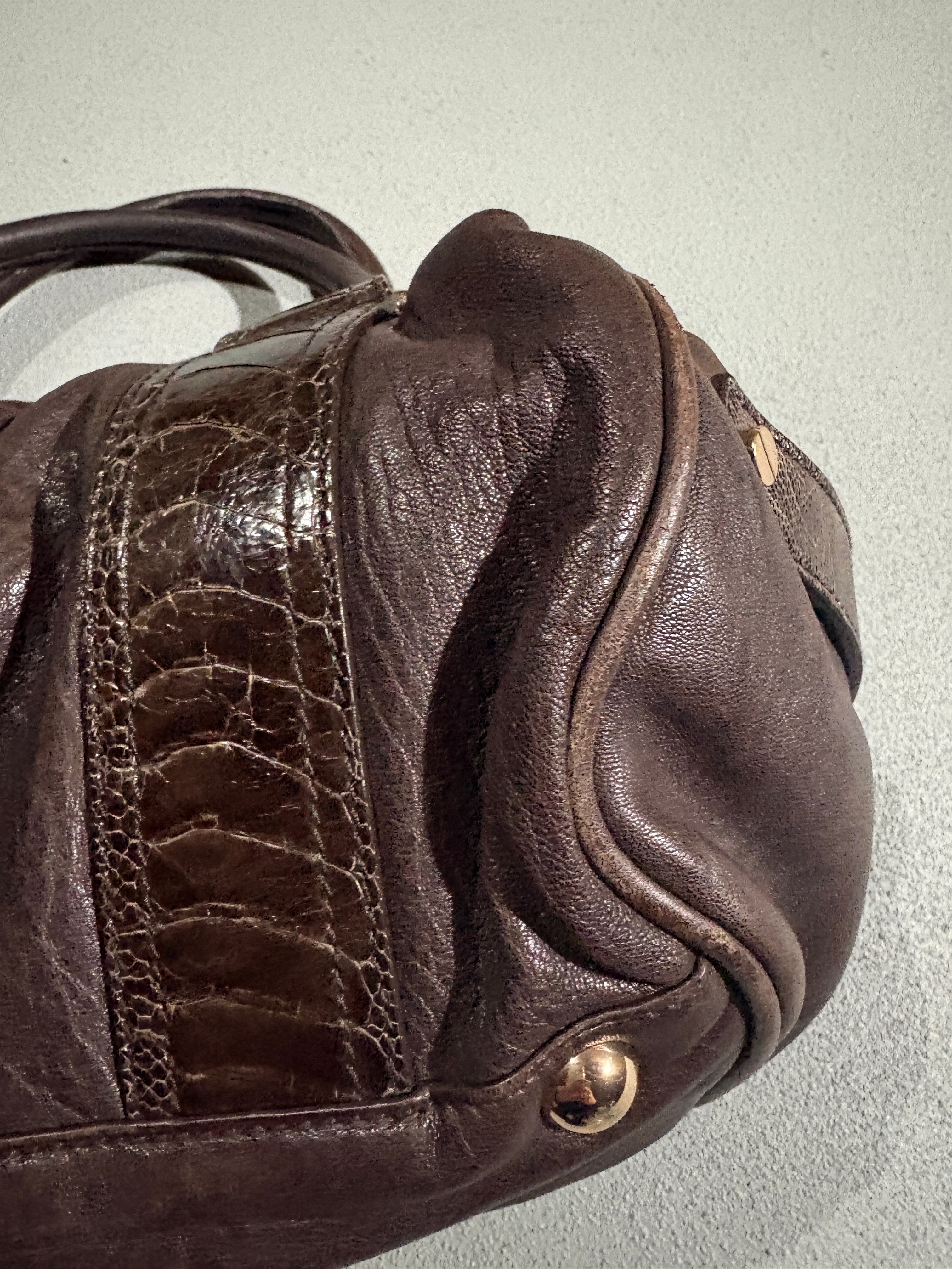 バレンシアガ ホイッスル ミニボストンバッグ レザー ブラウン